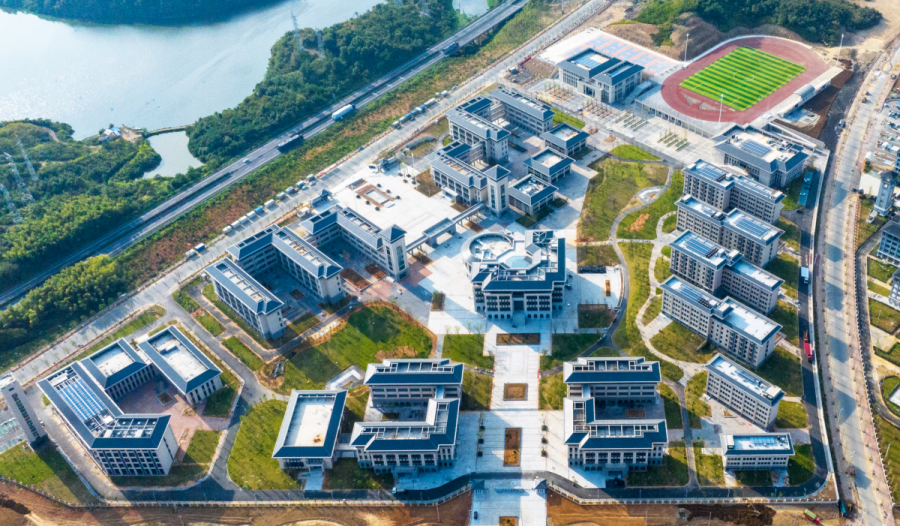 池州工業(yè)學校位于池州市東至縣舜城新區(qū)。項目占地約370畝,總建筑面積116950㎡,其中地上建筑面積109950㎡,地下建筑面積約為7000㎡,包括教學樓、實訓樓、師生宿舍樓、綜合樓、文體館、食堂等21幢單體,以及場地平整、道路、圍墻、綠化、給排水、強弱電等附屬工程。