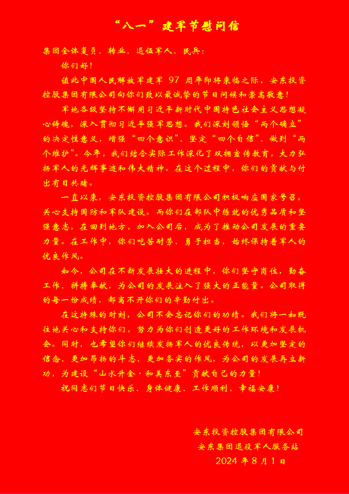 安東集團(tuán)開展“八一”建軍節(jié)擁軍優(yōu)屬活動(dòng)